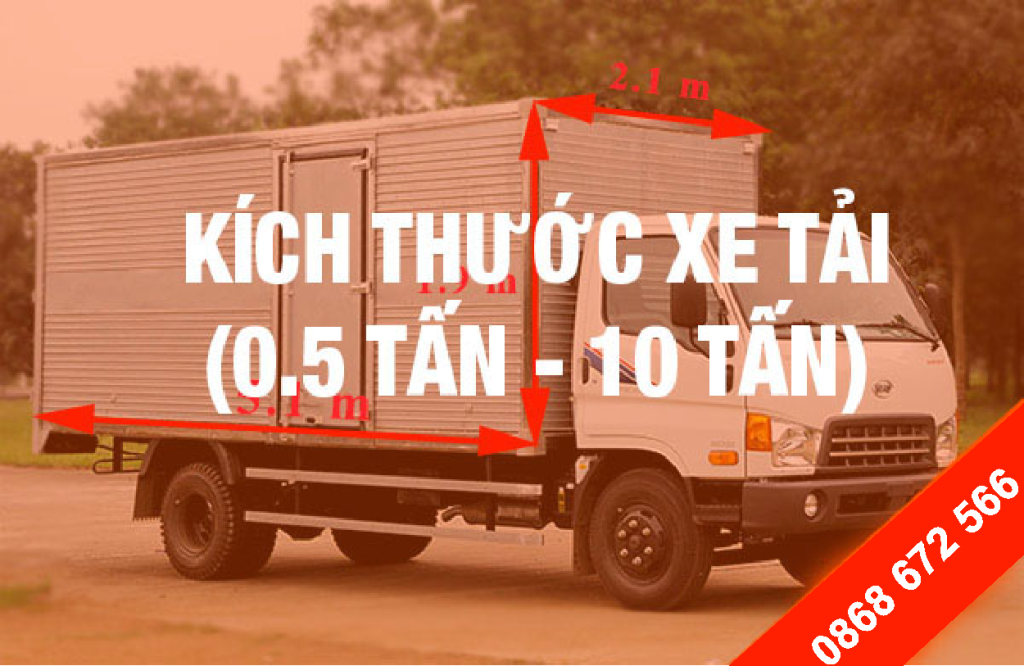 | Xe tải 3.5 Tấn(3500kg) | 5m | 2.1m | 2.2m |